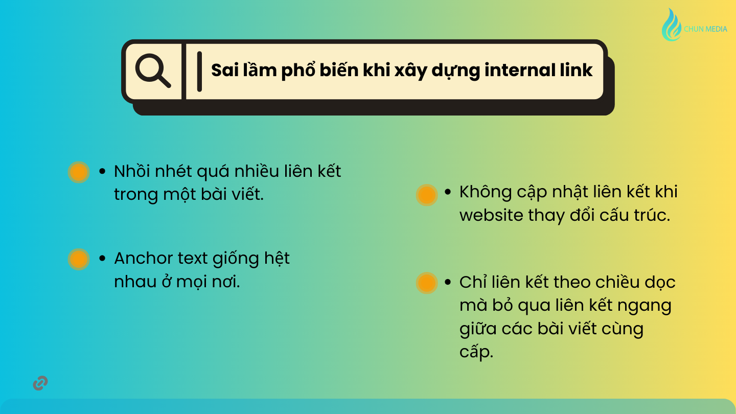 Những sai lầm này khiến internal link mất giá trị, thậm chí phản tác dụng trong SEO.