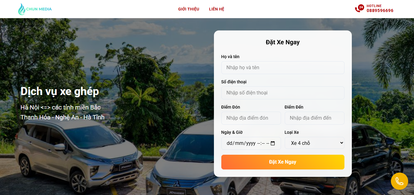 - Website đa trang gồm: Giới thiệu – Liên hệ – Đặt xe